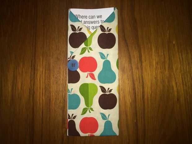Pegamento y doble hacia abajo el otro panel. Botón de pegamento. Voila!