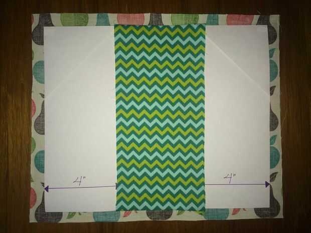 Coloque la tela exterior y coloque la cartulina (derecha arriba) en el medio, permitiendo algún material extra por todos lados.