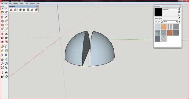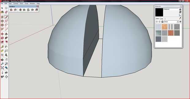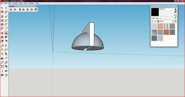 6. Continuación, utilice la herramienta empujar/tirar a levantarse que "rectángulo" que creaste con las dos líneas, debe empujarlo más allá de la parte superior de la media esfera