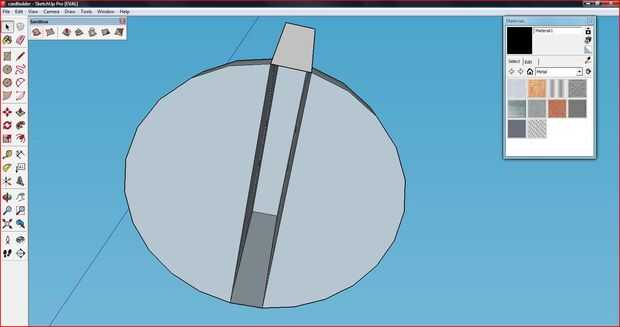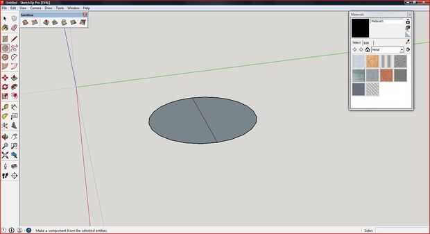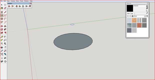 1. con la herramienta círculo, crear un círculo en el suelo en sketchup, hice mío con un radio de 13 milímetros.