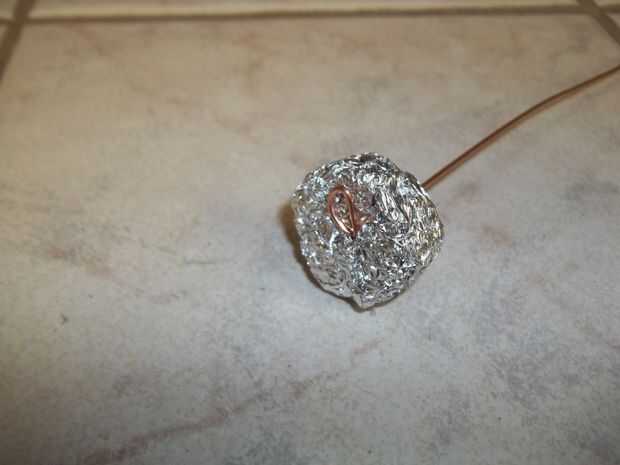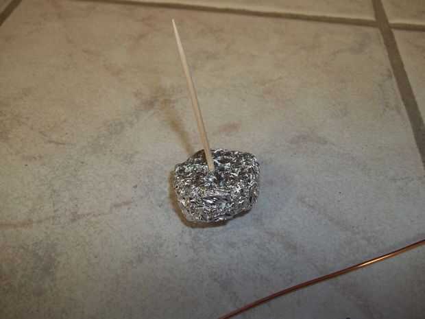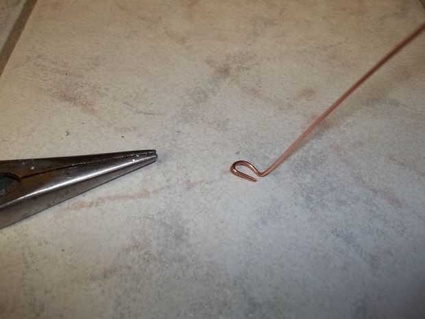 Corte una longitud de 6" de alambre. Utilizando pinzas, hacer un lazo áspero en uno de los extremos y luego doblar el alambre en un ángulo de 90 grados en el bucle. Así, cuando el lazo es acostado sobre una superficie, el cable se está pegando hacia arriba en el aire.