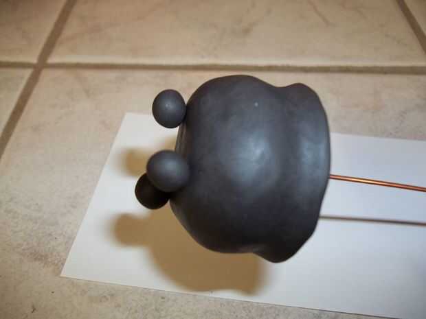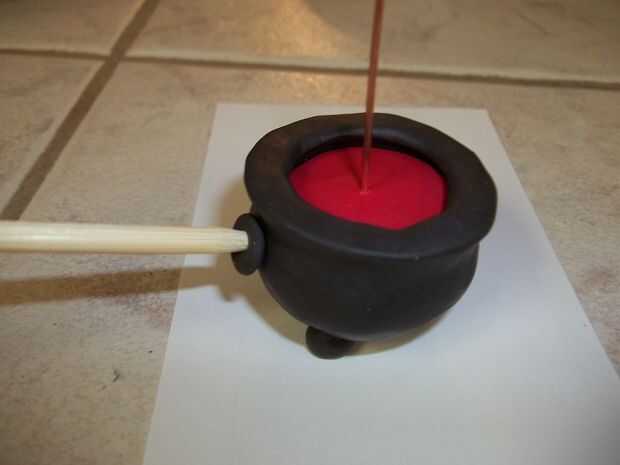 Para crear las asas en los lados, dividir la arcilla restante en dos. Cada sección del rodillo en forma de bola y aplanarlos un poco. Presione el extremo de un pincel o chopsitck en el el centro de una disco y luego, manteniendo el punto en la arcilla, colocarlo contra el lado del caldero y presione el punto ligeramente para fijar las asas. Tire el punto. Repita los pasos para crear un identificador para el otro lado.