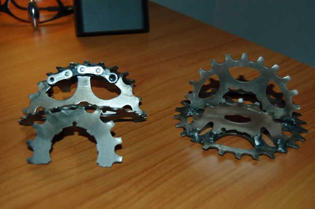 hice una correa personalizada fuera de viejas piezas de la bici. Mi idea era utilizar 2 engranajes de bicicleta para el cierre, que funciona bien y se ve muy bien. La desventaja es necesita un soldador, pulido rueda y cuero punzón para el proyecto. M