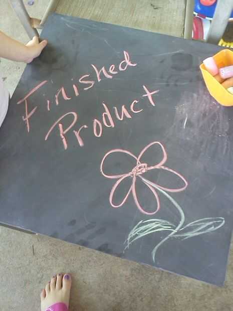 Realmente terminamos rociando la mesa para los niños a jugar en. Esto es una manera muy fácil y barata conseguir unas millas extras de muebles viejos o simplemente para divertirse con los niños.