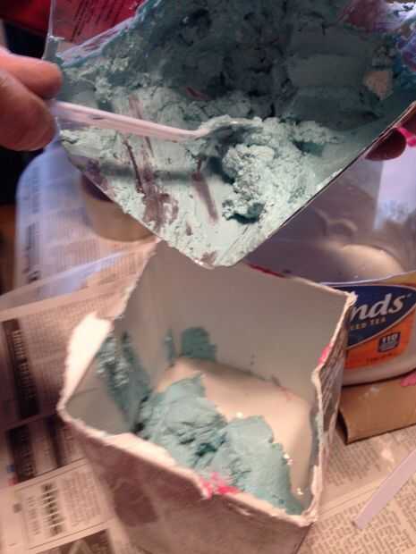 3. Ahora poner las mezclas de nuevo en el contenedor de yeso sin embargo desea. Tienes 20 minutos hacerlo antes de empezar a configurar.