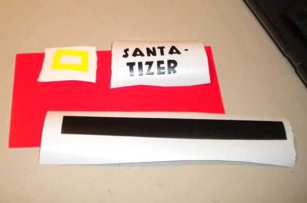 Usé George y cartucho de Cricut formas básicas para cortar un rectángulo de papel rojo brillante con un tamaño de 8 pulgadas de ancho x 4 pulgadas de alto. Entonces utilicé vinilo para los otros cortes. Corté un pedazo negro de la correa con un tamaño de 8 pulgadas de ancho x 1 pulgada de alto de George y cartucho de Cricut de formas básicas. Entonces utilicé vinilo amarillo y el cartucho de Frolic invierno cortar la hebilla con un tamaño de 1 1/2 pulgadas. Para la fuente, usé el cartucho de Cricut Robotz y corte el dicho en 2 1/2 pulgadas de ancho x 1 1/4 pulgadas de alto.