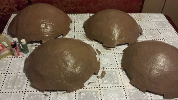 Me aerosol pintado a ambos lados de la cáscara y añade algunos detalles con un pincel y pinturas acrílicas.