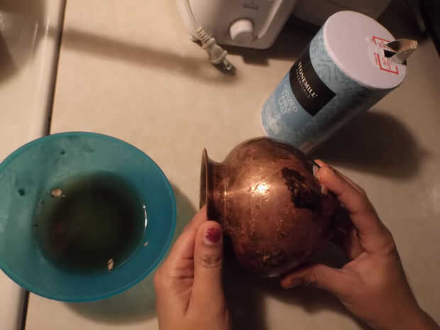 2. utilizar la misma consola de mezcla para limpiar la parte del Jarrón frotando con sal (aquí usted notará la diferencia al roce)