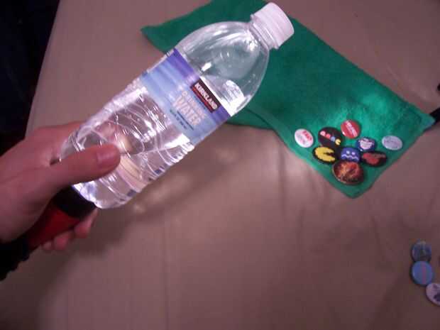 Esta es una de mis técnicas de iluminación favorito. Que usé última. Es sólo una linterna brilla a través de la parte inferior de una botella de agua que es medio completo e inclinado.