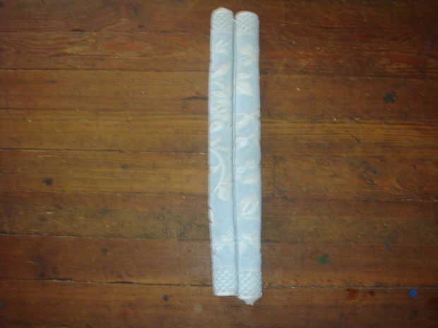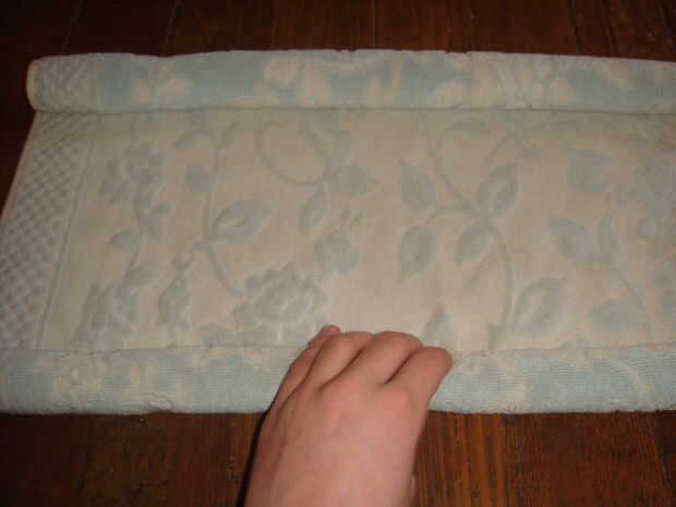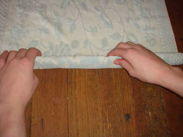 echar un vistazo a esta vieja toalla de té que tengo aquí, se ve como un pollo puede estar escondido ahí? Creo que veo una.Paso 1: primer Rollo a un lado de la toalla a mitad de camino.Paso 2: luego Rodillo hasta el otro lado.Paso 3: Y entonces Su to
