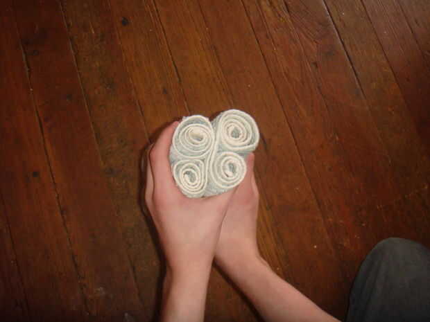 Después de que ha hecho usted necesidad de voltear la toalla y doblez en la mitad, lo debe tener este aspecto: