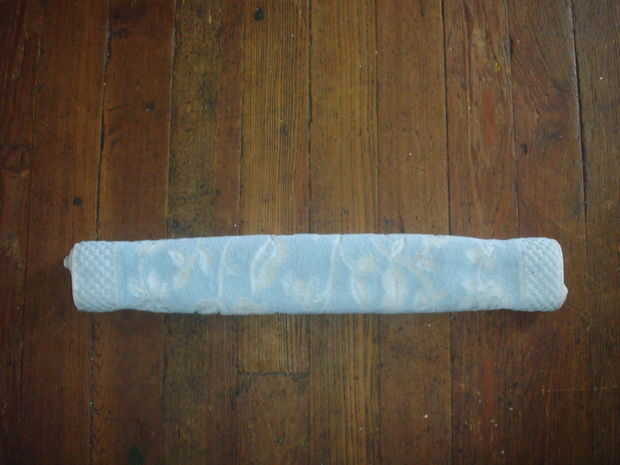 echar un vistazo a esta vieja toalla de té que tengo aquí, se ve como un pollo puede estar escondido ahí? Creo que veo una.Paso 1: primer Rollo a un lado de la toalla a mitad de camino.Paso 2: luego Rodillo hasta el otro lado.Paso 3: Y entonces Su to