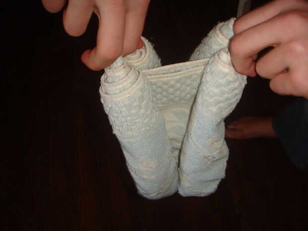 El paso final es la extracción, para ello primero necesitas agarrar las 4 esquinas de la toalla, entonces asegúrese de frente así que cuando usted tira hacia fuera está tirando de él enfrente de la manera se dobla, después colocándolo, sólo tire de!