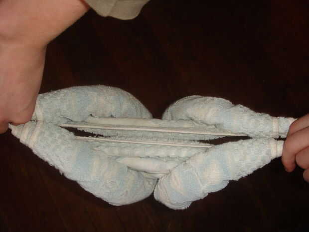 hace años yo me crié en el antiguo arte de doblar toallas. Ahora muchos años después la niebla del tiempo ha tomado mucho de este arte de mi memorries. Todo lo que está a la izquierda es... un pollo.Paso 1: Se necesita 1) dispuesta hacia fuera plan