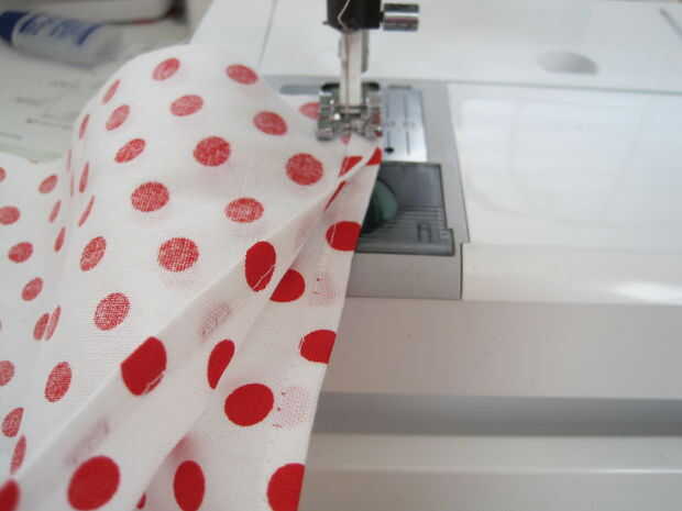 Coser los lados largos juntos.  Colocar derecho lados juntos y coser cada borde de arriba a abajo, unir ambos lados.