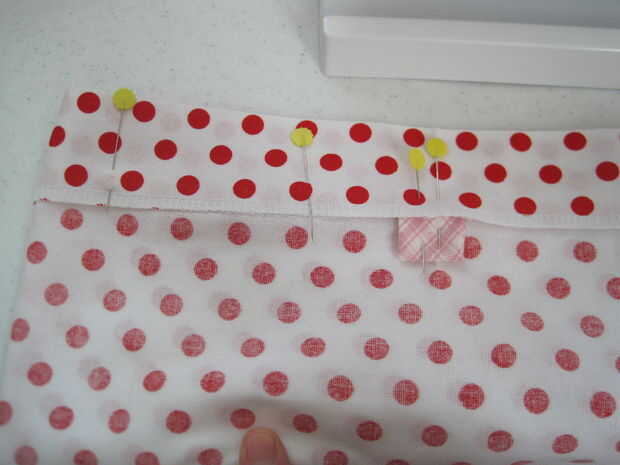 Doblar la banda de cintura de más de 1.5 a 2 pulgadas. Esto depende cómo grueso su elástica. Marcar con un alfiler donde vas a comenzar a coser y cuando terminas, deje un espacio de 3 pulgadas. También puse una etiqueta en la parte posterior, normalmente utilizo restos de cinta de bies (cualquier cinta funcionará también.) Cosa de pin a pin dejando la brecha abierta. Coser otra línea alrededor del borde superior sobre un 1/8 de pulgada de la parte superior. Hacer coincidir las costuras laterales agregué otra línea cosido a la parte superior y la parte inferior de la banda de la cintura. Antes de coser cerrado añadir el elástico. Utilizo un imperdible a un extremo para abastecerlo a través de la carcasa del recién formada. Si usted puede tener el tratar de beneficiarios previsto en la falda para asegurarse de que el elástico se ajusta a derecho. Una vez hecho esto coser el hueco. Porque la toalla ya estaba terminado en el final no dobladillo la falda, si había corte ambos extremos necesita dobladillo en este punto.