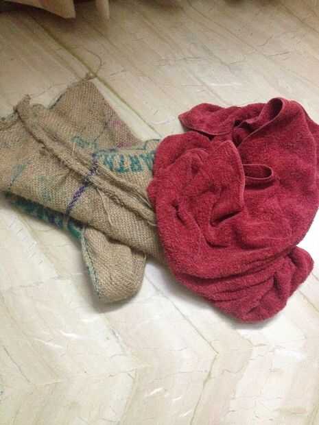 Toalla vieja a una estera del piso del bigote (1 / 6 paso)