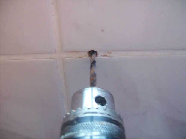 Mida la distancia entre los orificios colocando el estante contra la pared, y que marcas (tal vez con un clavo o un tornillo) a través de los orificios en la base de madera. Una vez que los anclajes de plástico en la pared, listo montar la cremallera.