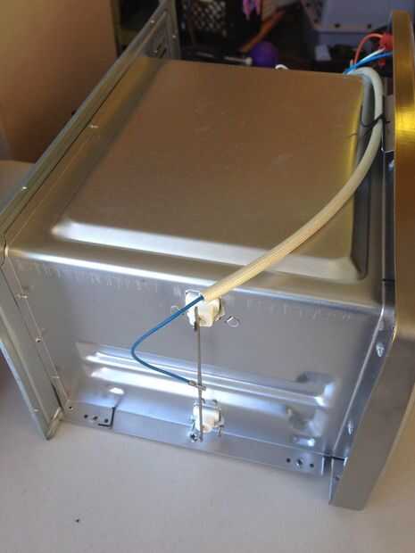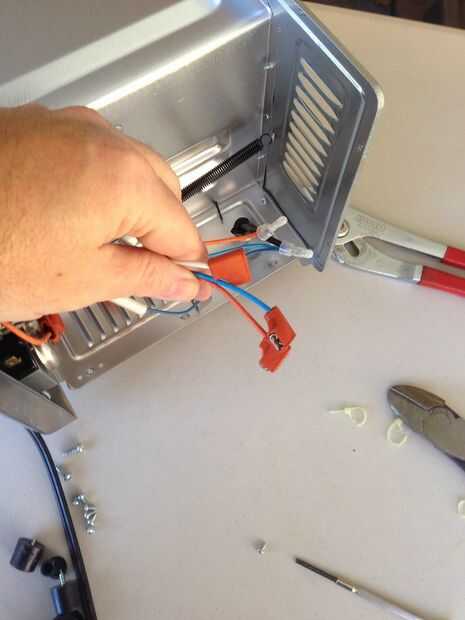 En este horno, los cables de interés tienen conectores QD en ellos. Los dos elementos utilizan. conectores hembra de 25" QD, pero la línea utiliza un tamaño más pequeño. Terminé lo corte y prensado en un reemplazo. 25" QD hembra.