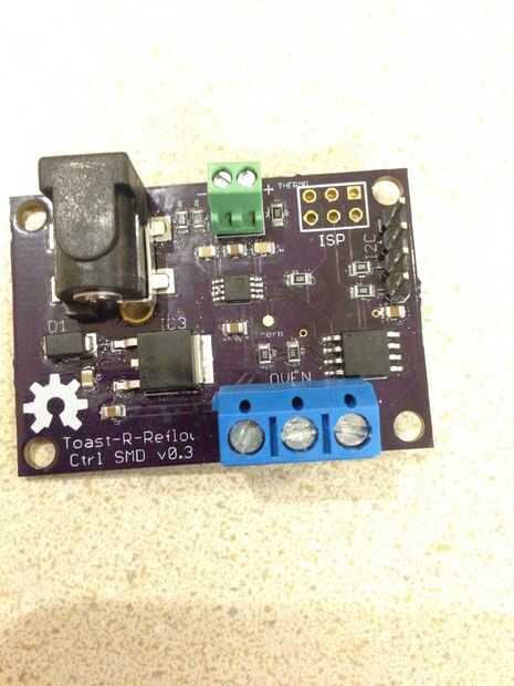 Si usted quiere construir su propio controlador, no olvides poner una resistencia de limitación de corriente en serie con las salidas de control del horno. Efectivamente es iluminación LED. Las especificaciones de optoisolator son una caída de tensión directa de 1,2 voltios y una corriente delantera de 30 mA. Para pines digitales del Arduino de 5 voltios, esto significa una resistencia serie de 150 ohmios. No exceda 50 mA o a dañar los Optoaisladores. Si estás utilizando un controlador ATmel (o un Arduino), entonces no exceda 40 mA o usted puede dañar el controlador.