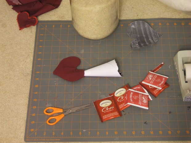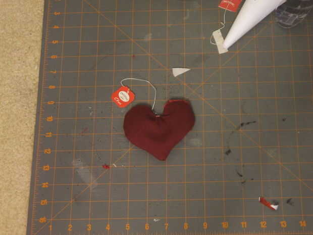 El corazón y el alma de este proyecto, bien sobre todo el corazón. Cortar dos corazones de tela grande o cualquier forma que desee, forma de alma, dinosaurio, compañero cubo cualquiera! Coserlo juntos dejando un pequeño agujero. Hacia dentro en y obtener algunos arroz (menos aroma mejor) y el té de su preferencia. Llenar (un embudo ayuda) el té corazón 3/4 y 1/4 arroz. Coser para arriba y su listo para el siguiente paso! Permite tener un cierre!