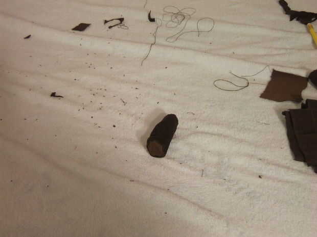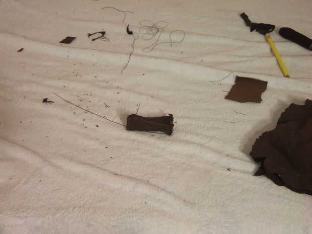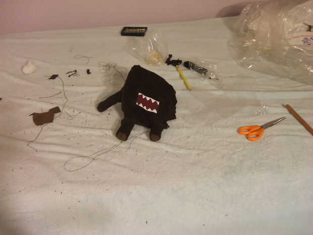 5) Corte ranuras en la parte inferior hacia la parte delantera para que Domo-kun tiene un trasero más grande. le hace sentarse mejor