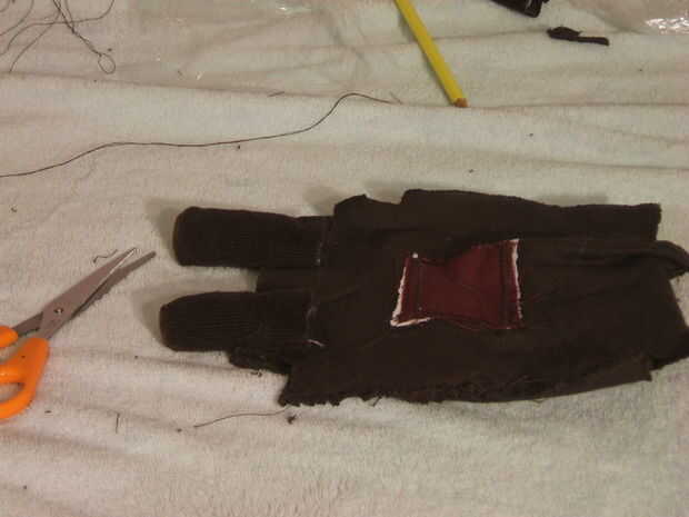 2) Coloque un trozo de tela sobre el extremo abierto del tubo y coser alrededor de él