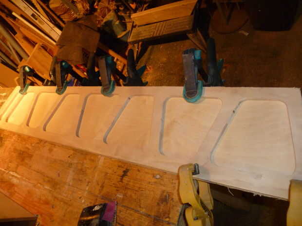 Utilicé una combinación de cinta adhesiva de doble cara, autorroscantes, tornillos y abrazaderas para sujetar la plantilla a la pieza de trabajo y terminado un lado con un poco de corte en un router de 1/4 de mano.