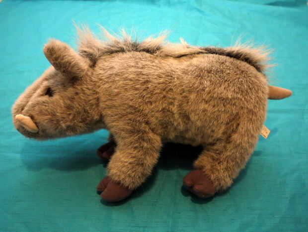 El warthog correcta es "Walter Warthog" haciendo también Fundamental alrededor de 1987 y ya no está en producción. Sin embargo, si usted busca en ebay por warthog de peluche o felpa warthog o warthog fundamentales o Walter Warthog, tienes una buena oportunidad de convertir uno o dos arriba (veo tres ahora). Mira atentamente la foto aquí para el warthog correcto. Es 18 pulgadas de la nariz hasta la punta de la cola. Viene con una etiqueta de tela que dice: