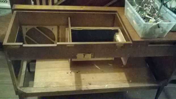 Bastante simple para sacar todas las piezas de reproductor de discos y tal, una vez que su trabajo con su barebone estructura entonces empecé a diseñar cómo sería obras. Quería una hielera desmontable grande para la cerveza y hielo por supuesto así que pude vaciar el agua hacia fuera una vez que había derretido. También quería un lugar para las botellas de licor. y posiblemente un lugar de copas de vidrio para mezclar bebidas etc..