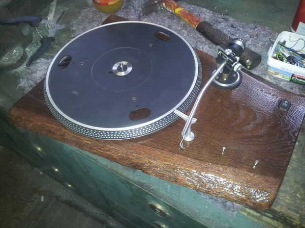 He estado jugando con otro de los proyectos fue este viejo tocadiscos roto. Quería hacer uso de lo otro que el uso de una tabla. Así que he decidido ya que hay siempre una cerveza semanal pong torneo aquí, parecía una buena idea para hacer una miniba