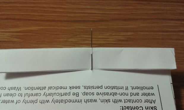 - Gire el papel, perforar la tapa a mitad de camino y salir la aguja por el borde de la aleta.