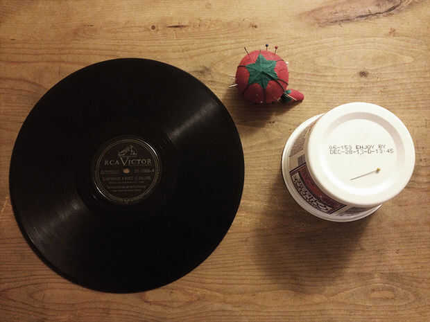 4. una forma para hacer girar el disco. Sólo estoy utilizando un lápiz y girar con una mano mientras sostiene en su lugar con el otro. Este camino toma dos personas pero un "lazy susan", mano taladro set up, o rodamientos que sea más fácil.