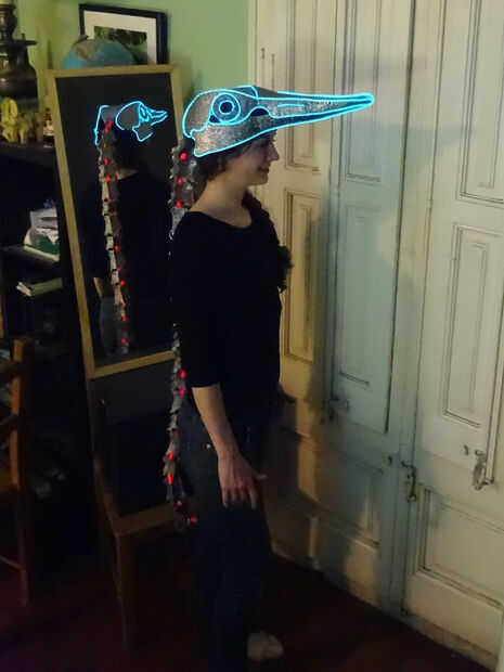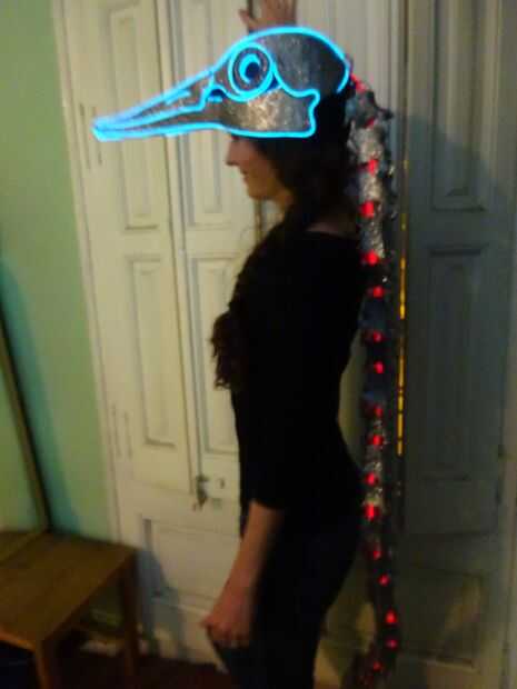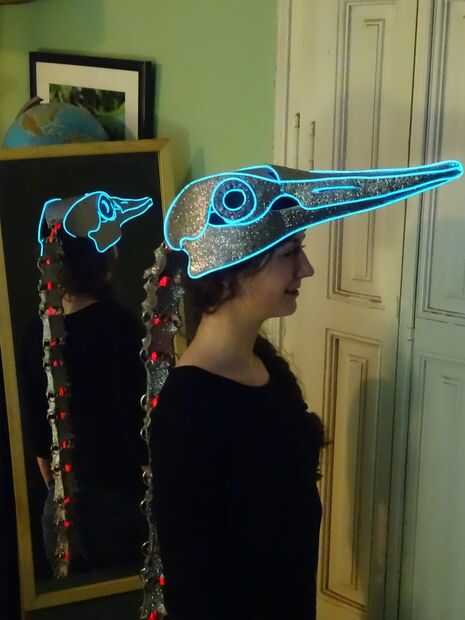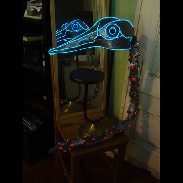 Mi segunda incursión en el mundo de espuma y EL alambre de tocados. Esta vez se trata de un cráneo de pájaro antiguo gigante con una columna adjunta; EL cable describe y acentos de las características de los tocados. Tengo sonido sensible EL hilo conductor para que pueda ir con la música:-).