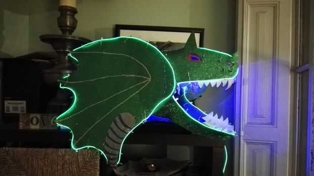 Inserte EL paquete de pilas alambre de bolsa de espuma interior y Desenrolle el cable. Delinear el tocado con EL alambre, fijándolo con pernos de seguridad. Utilicé un hilo de 3M de alambre, pero fue demasiado corto para delinear la parte inferior de la mandíbula y los cuernos. Por lo tanto, recomiendo tratar de un filamento de 5M de alambre.