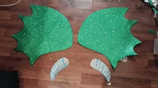 Nota: Una cosa que cambiaría si pude hacer este proyecto es utilizar 3 trozos de espuma para cada oído, en lugar de 2. Con sólo 2 piezas las orejas todavía son un poco endebles. Sin embargo, si usted hace esto que usted puede tener que reajustar el equilibrio de los tocados cuando se agrega el paquete de iluminación, que será más pesado en la parte posterior.