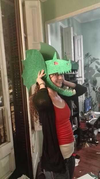 Comprobaremos que están contentos con la apariencia y forma de los tocados. Asegúrese de que quede ajustada alrededor de la barbilla para que lo pueda soportar el peso de las luces. Nota: Si desea añadir luces a los tocados, van a quedar en una bolsa sobre su cabeza, por lo que debe dejar una o dos pulgadas o habitación entre la cabeza y la parte superior de los tocados.