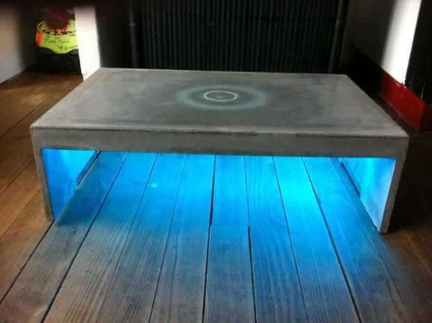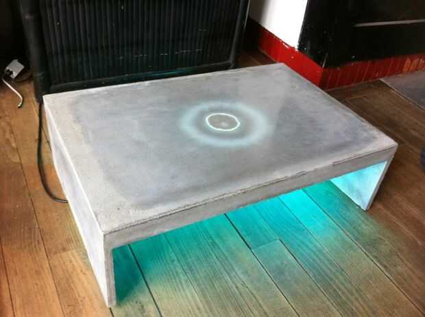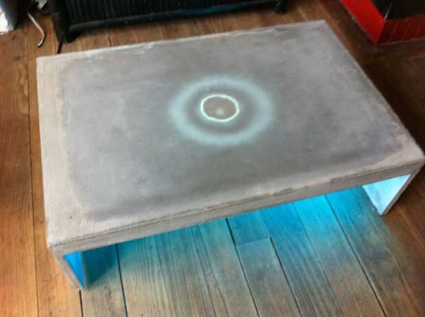 Mesa baja una pieza en concreto gfrc, con un ojo en el medio