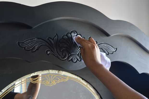 Ahora dar una segunda capa de pintura en la parte superior de la mesa y deje que se seque. Tarda unos 10 a 15 minutos que se seque. Una cosa importante sobre la pintura calcárea es que, no sobrecargar el pincel con pintura. La pintura es ya pesada y tan si usted sobrecarga el cepillo deja marcas de pincel fuerte. He leido por ahí que sumergir el cepillo en agua después de cargar la pintura ayuda a reducir las pinceladas, pero que no trabaja en colores oscuros. Probé esa técnica que dio lugar a la más ligera sombra de las vetas de black(Carbon) y se estropeo la mirada. Por lo tanto, tomar una pequeña cantidad de pintura a la vez y su forma de trabajo. No se preocupe demasiado acerca de los trazos, no les verá como usted quería intencionalmente. (Lo consiguió? ;)). También si usted siente cualquier pinceladas fuertes, usted puede ligeramente lijar antes de aplicar la siguiente capa de pintura.