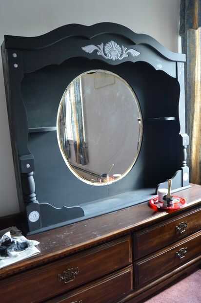 Decidir las áreas que desea angustia y pintar el color base. Hice 2 capas de pintura de antaño. También le di la primera capa de pintura en áreas restantes de la parte superior de la mesa.