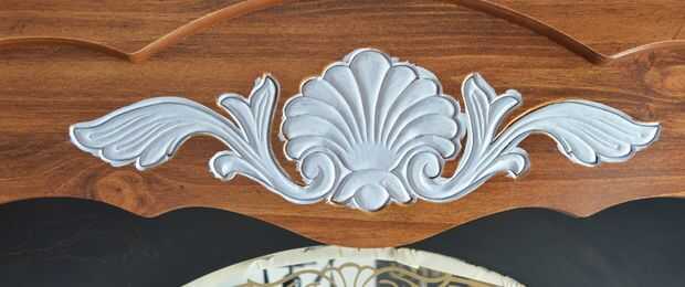 Aquí quería angustia el diseño del centro y las piezas pequeñas en los lados exteriores de la tabla de preparación. Se puede ver en el antes de foto como todos los diseños de estos elementos son tipo de fusión junto con textura de madera de fondo que no podíamos verlos claramente. Yo no quería eso. Quería destacar los diseños al mismo tiempo en que hizo no quiso los diseños para ver como he pintado algo en diferentes colores y pega. Entonces, fui con mirada de angustia. Como siempre lo he hecho una prueba en un trozo de madera para aprender cómo funciona antes de hacerlo en el diseño.