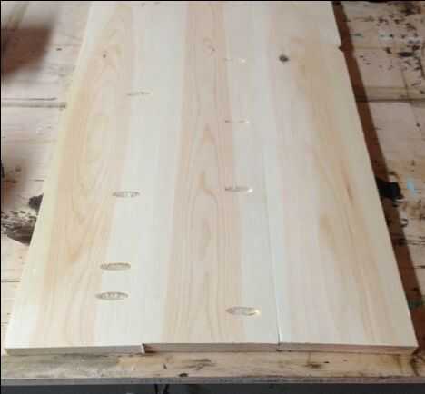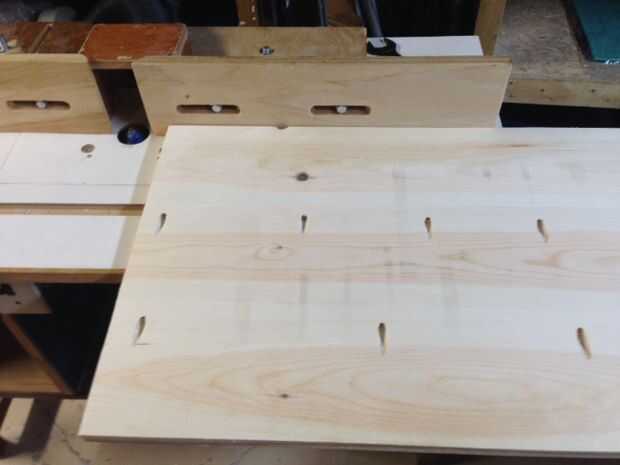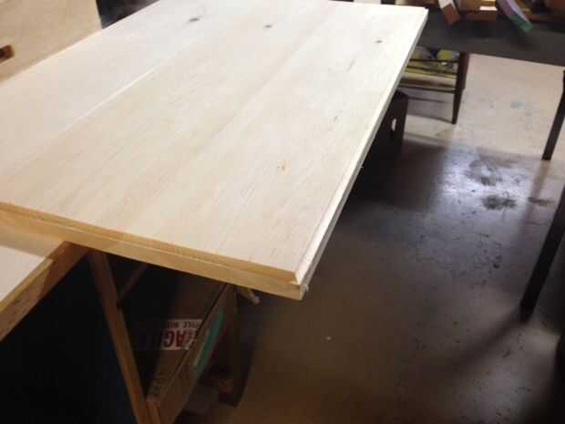 Entonces empecé a trabajar en hacer una tapa nueva para las mesitas de noche y cómodas. Hice los agujeros de bolsada y atornilladas y pegadas a las placas.