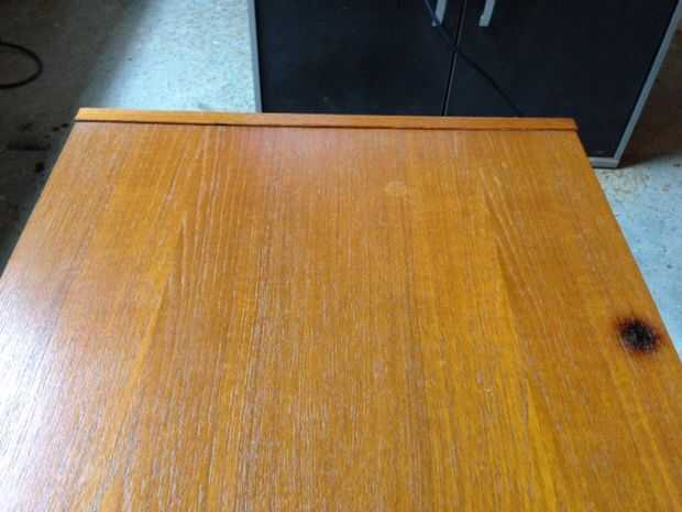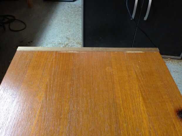 Tuve que cepillar la parte superior de la cómoda porque no es plana puesto que voy a enroscar una nueva tapa de pino en existente.