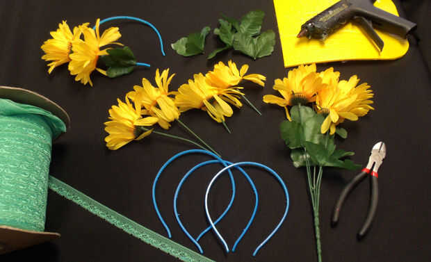 Un viaje rápido al árbol del dólar local rindió dos docenas de vendas, sobre una docena simples sombreros de paja y vestidos de una carga de brazo de flores artificiales en los colores para que coincida con el Munchkin. Todos que tenemos que hacer más de 30 cascos en un día por poco más de $50.