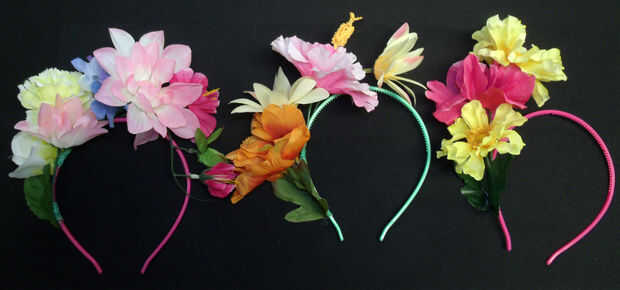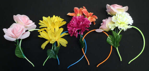 Usted puede elegir cuántas flores o combinaciones de colores para adaptarse a sus necesidades. Como las vendas llegaron en paquetes de 4 colores surtidos y compré 3-4 de cada paquete, hice que empareja conjuntos de diademas en varios colores para que coincida con los patrones florales brillantes, cheques y rayas en los grupos de los vestidos de Munchkin. Siempre es una buena idea hacer más de lo que necesita, si acaso algunos tienen accidentes.
