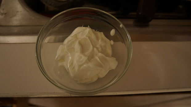 Me corte por la mitad y poner alguna crema agria en un recipiente en el lado. Sirve yo y mi hermano.
