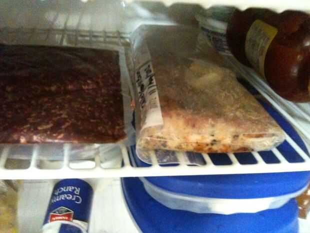 Imágenes: un lote libre de nitrato y al horno de tocino terminado esperando a freír, panceta de cerdo y curado mezcla listo para curar, panceta de cerdo curado en la nevera el día 1