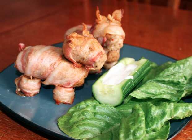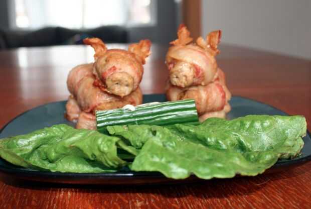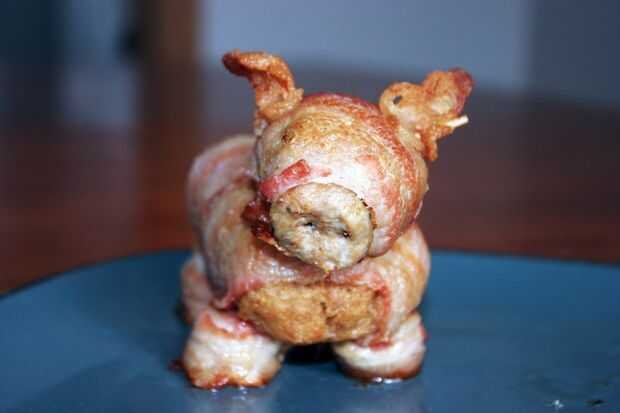 Originalmente tenía intención de hacer una cola rizada por envolver una tira de bacon alrededor de un palillo de dientes. La cola de tocino quemado porque lo cociné la misma cantidad de tiempo que cociné la hamburguesa. Si tuviera que hacerlo otra vez me hacen una cola rizada pero lo saca del horno la mitad.