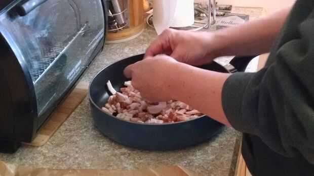 Tocino, col y Pasta hornear (3 / 8 paso)