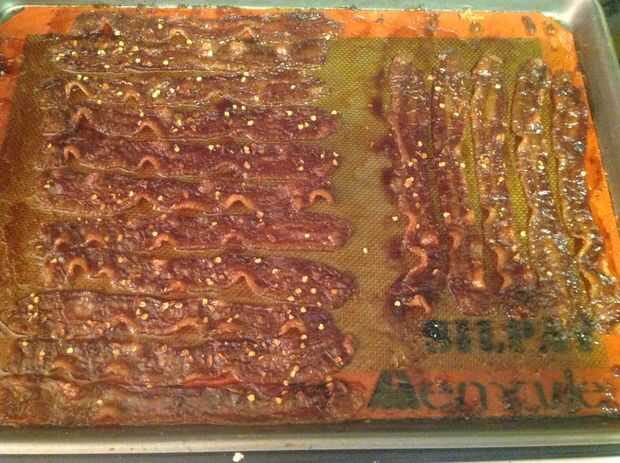 Precalentar el horno a 215ºF y hornear durante aproximadamente 1 1/2 a 2 horas o hasta que la panela se derrita sobre todo y el tocino es a partir de la arruga.